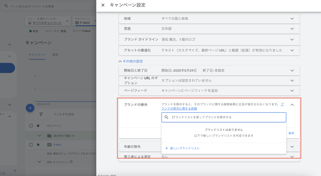 P-MAXではブランド名を除外したい場合、キーワードの除外ではなく”ブランド除外設定”も有効です。