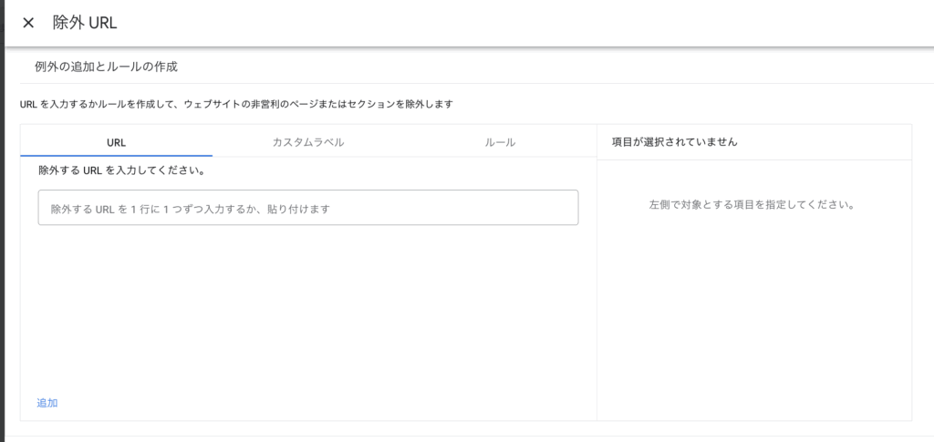 ルール:”jogai”など特定の文字をURLに含むページの除外が可能